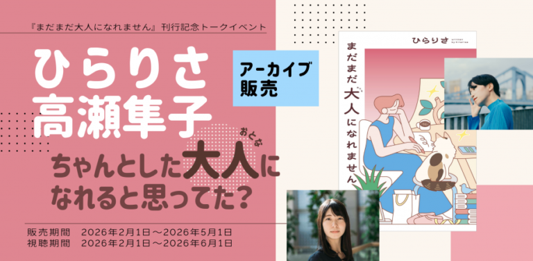 ※イベントは2026年1月24日、今野書店主催で開催されました。※本チケットは2026年5月1日までの限定販売です。※ご購入後は2026年6月1日までの期間、何度でもご視聴いただけます。 Peatixのページはこ … 続きを読む 【アーカイブ販売】『まだまだ大人になれません』刊行記念刊行記念 ひらりさ×高瀬隼子トークイベント ちゃんとした大人になれると思ってた?